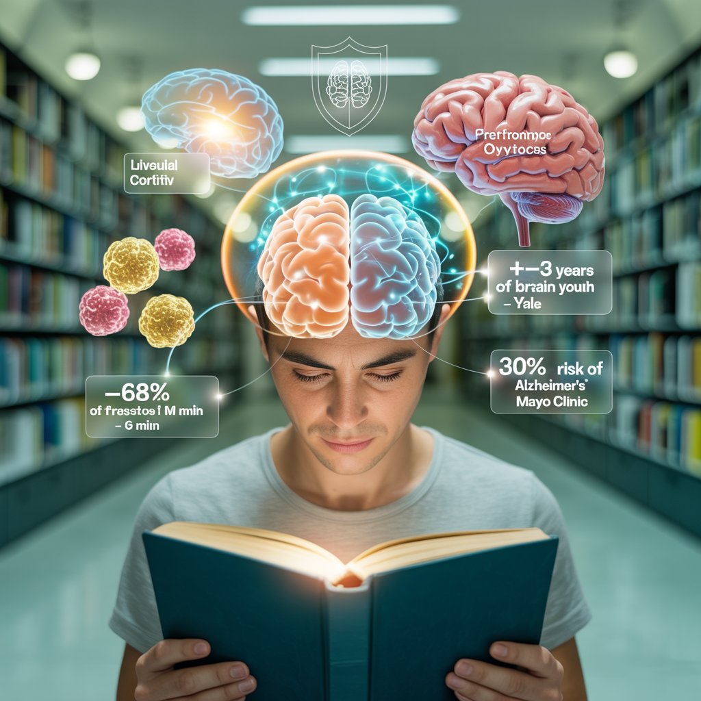 Estudos da Universidade de Stanford comprovam que a leitura ativa múltiplas áreas do cérebro, incluindo o córtex visual, regiões responsáveis pela empatia (como o giro frontal inferior) e até áreas ligadas à memória de longo prazo. Pesquisas de neuroplasticidade mostram que ler regularmente fortalece as conexões neurais, aumentando a capacidade de aprendizado e adaptação. Além disso, a Universidade de Sussex descobriu que apenas 6 minutos de leitura reduzem o estresse em até 68%, mais do que ouvir música ou caminhar.